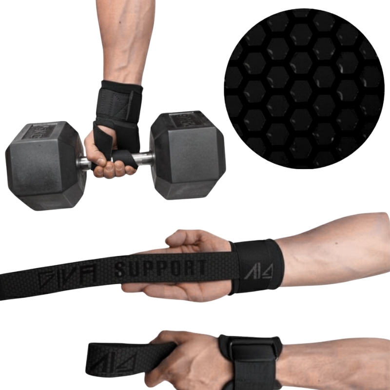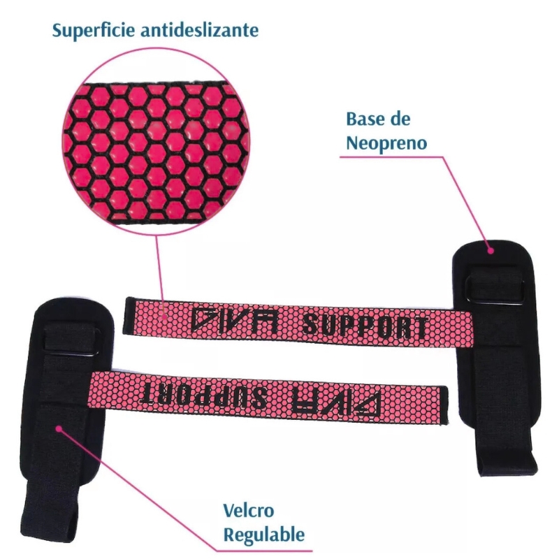 - Características: Fabricados en material resistente y de alta durabilidad. – Superficie antideslizante que garantiza un agarre firme. – Ajuste cómodo y seguro alrededor de las muñecas. – Disminuyen la fatiga de las manos y previenen lesiones. – Perfectos para levantamiento de pesas, crossfit y entrenamiento de fuerza.